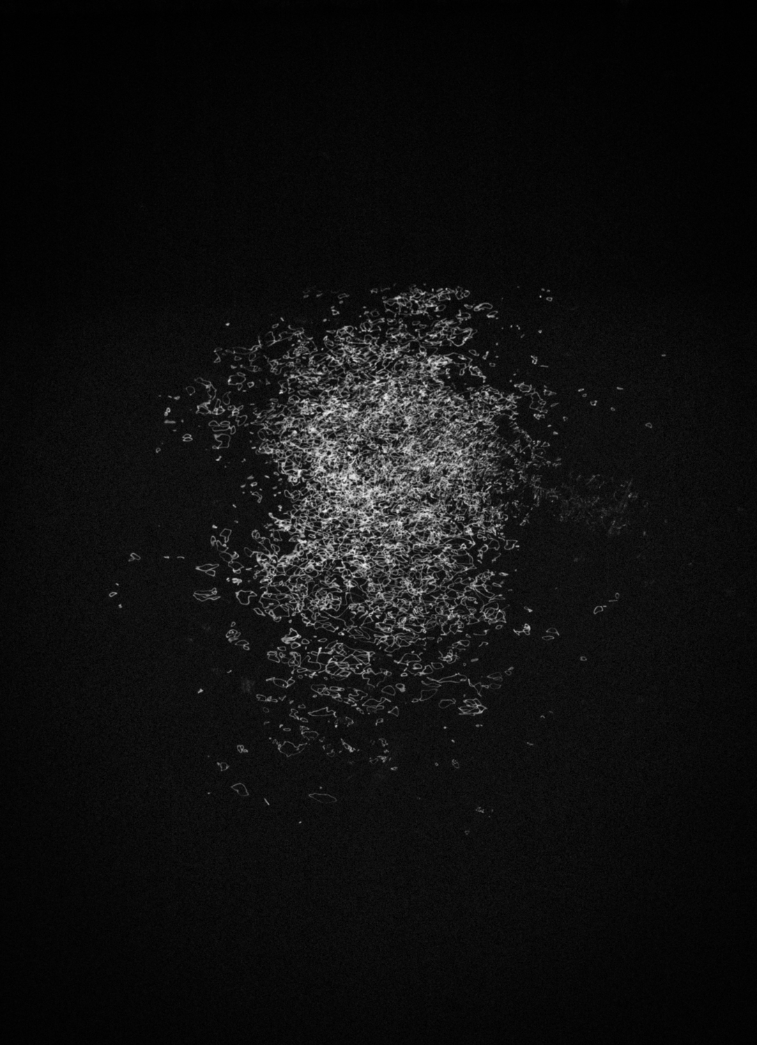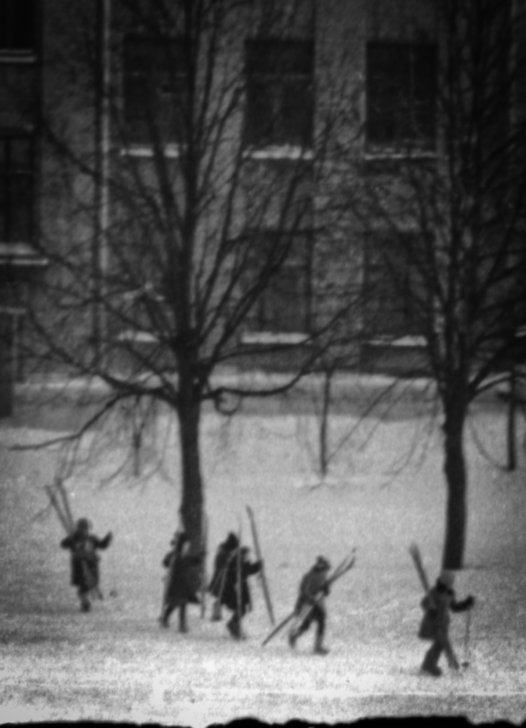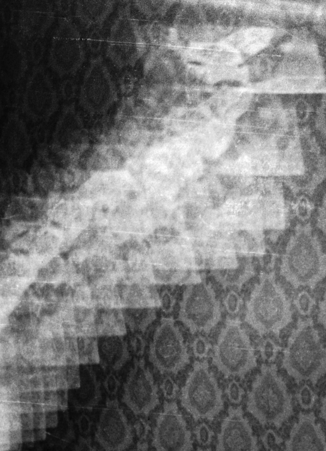 is a photographic project by Aleksei Kazantsev exploring the concepts of mental time travel, reconstructive episodic memory, distortions, and illusions of time perception. The subjective nature of these phenomena is brought into contrast with seemingly objective documents of reality in the form of fragments of archival images bearing additional layers of time signs – scratches, stains, processing flaws in the original analog film material. Intentionally choosing small fragments which were not intended to be the focus of the original photographs, the artist is reconstructing and misconstruing the memory of photographic images into fantasies of fictional time travels.